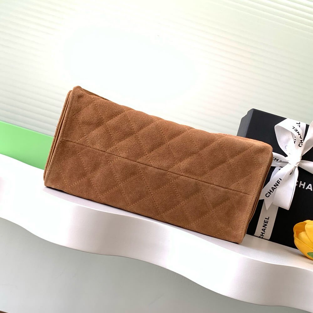 Brown suede with gold hardware