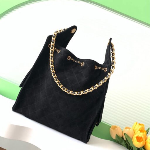 Black suede with gold hardware