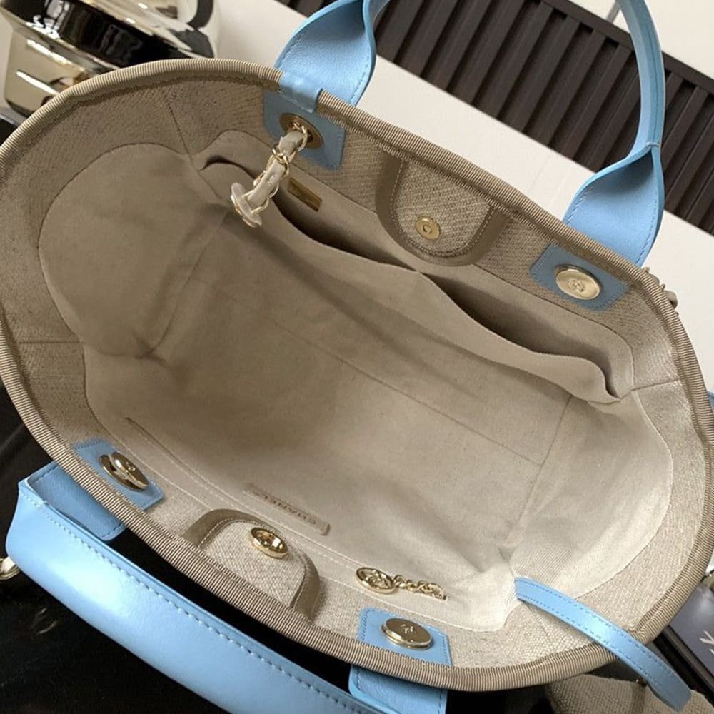 Light blue trims and light gold hardware