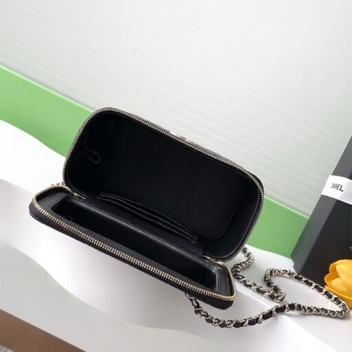 Shiny Grained Calfskin, Strass & Gold-Tone Metal
