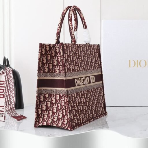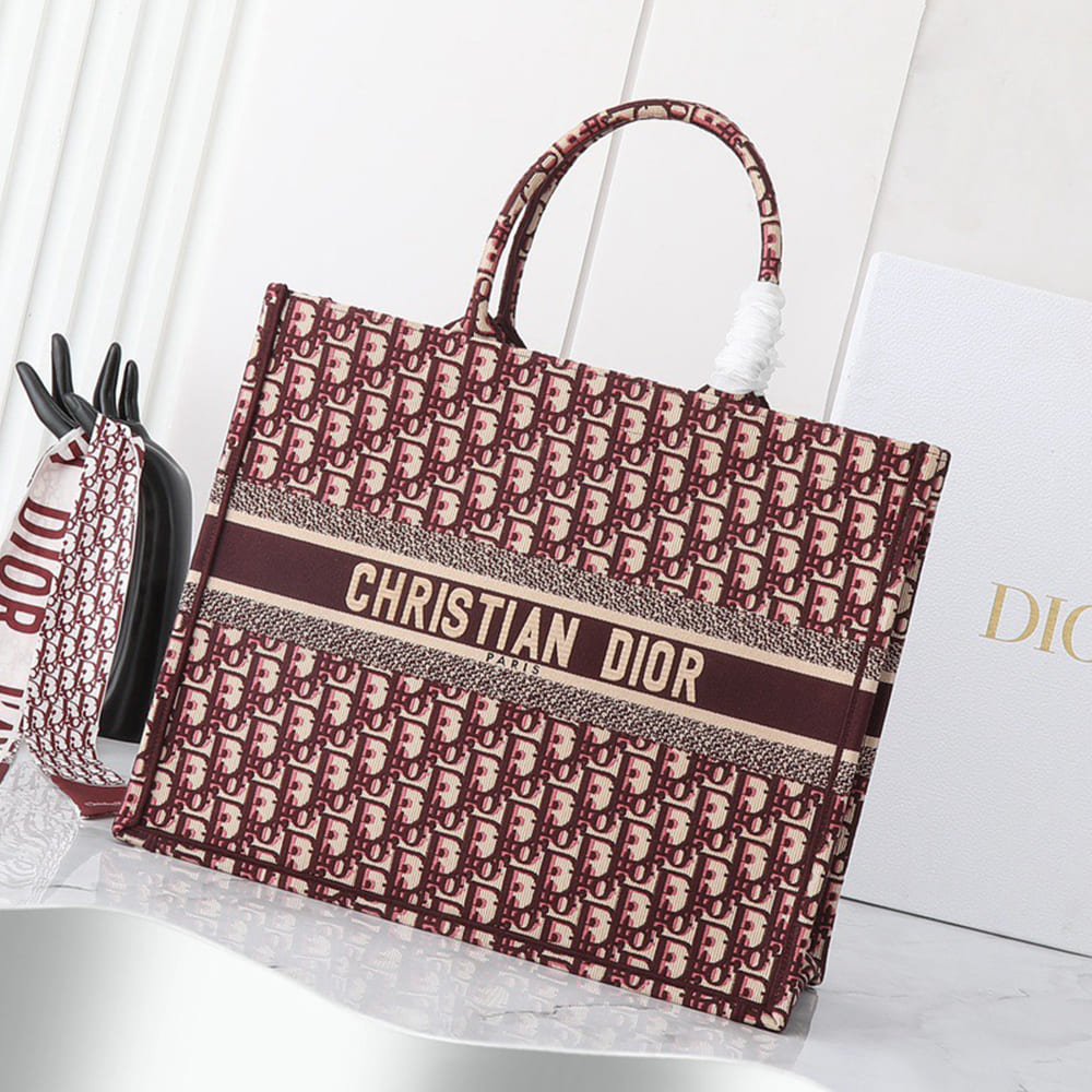 Burgundy and beige Dior Oblique Embroidery (42 x 35 x 18.5 cm)