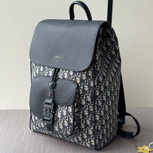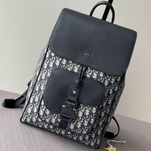 Beige and Black Dior Oblique Jacquard with Black Grained Calfskin