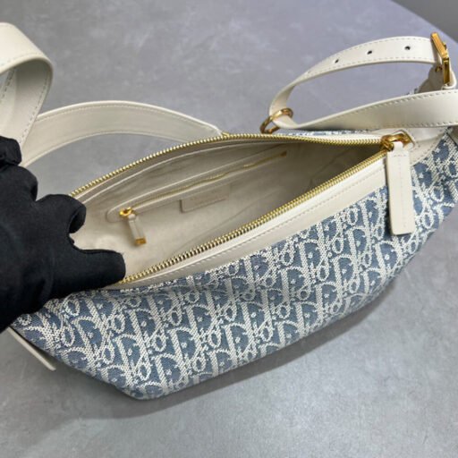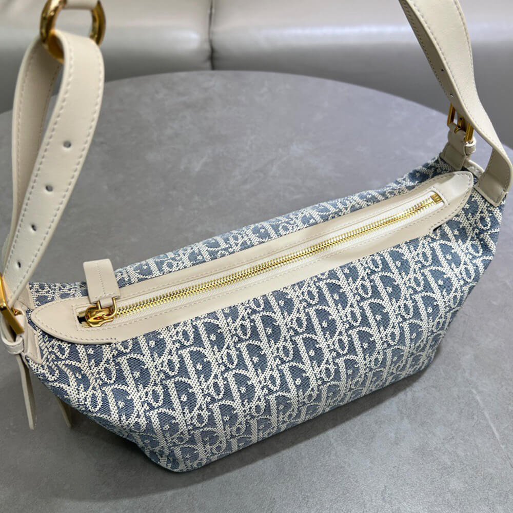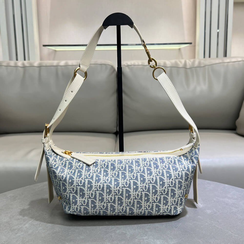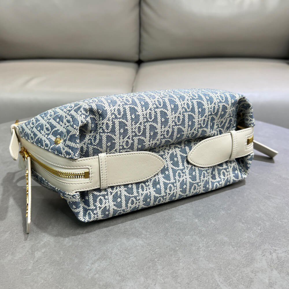 Blue Dior Oblique Chambray with Raffia Effect and Light Biscuit Smooth Calfskin