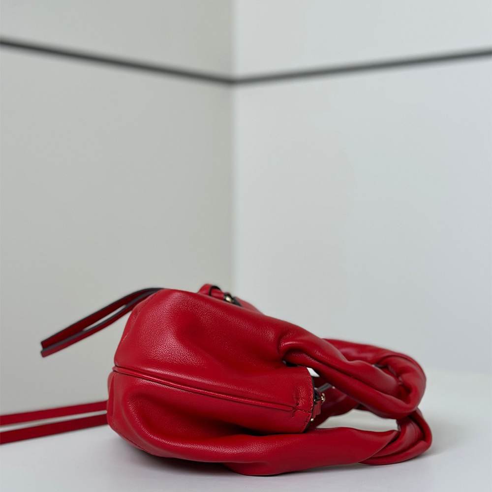 Rounded flap with clasp and knotted tie in tone-on-tone leather. Gold-coloured hot-stamped FENDI ROMA logo.