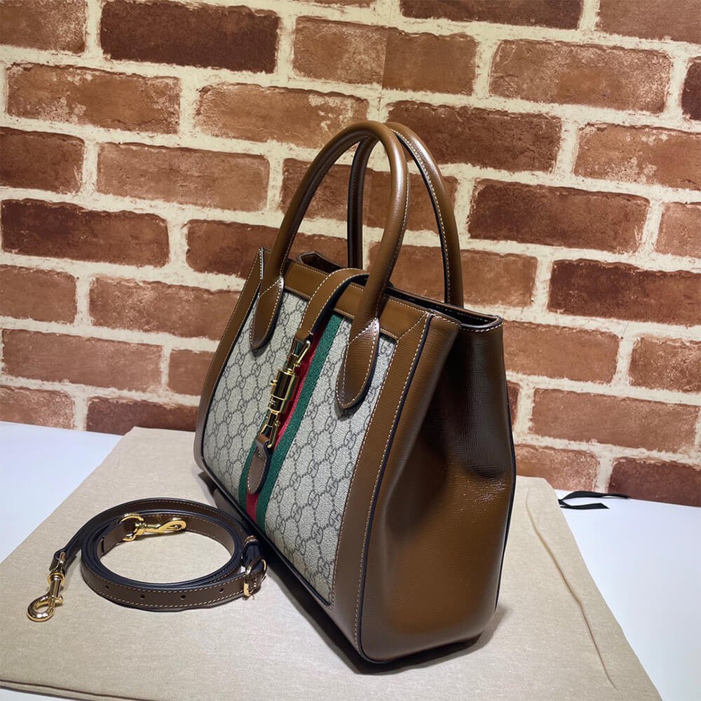 Beige and ebony GG Supreme canvas, a material with low environmental impact, with brown leather trim