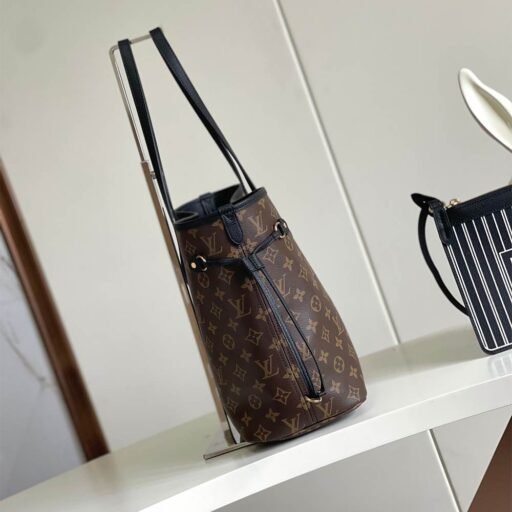 Black cowhide leather/Monogram Coated Canvas