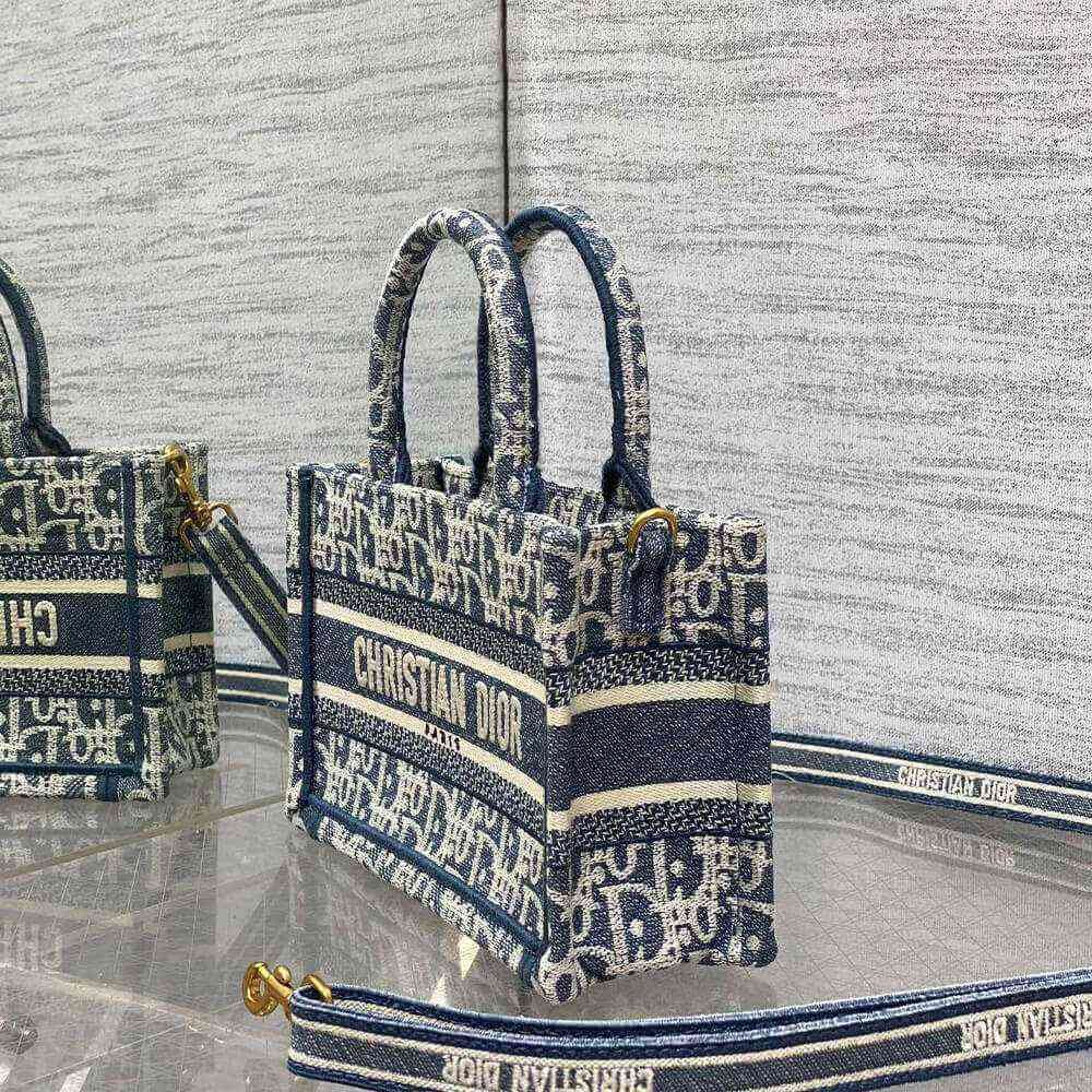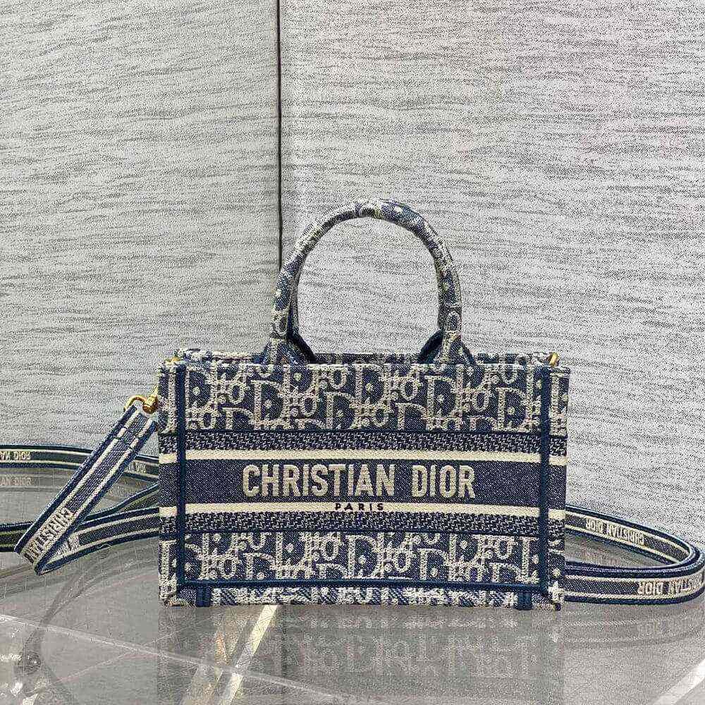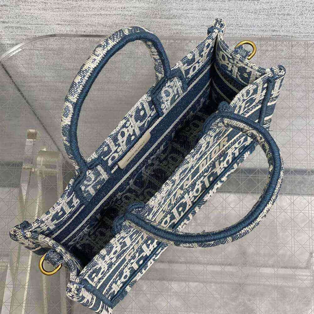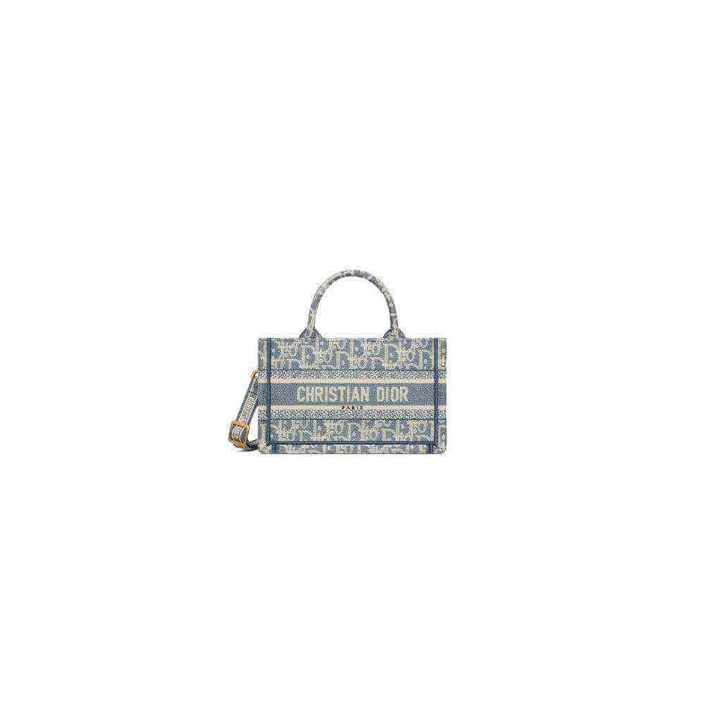 Blue Dior Oblique Chambray-Effect Embroidery