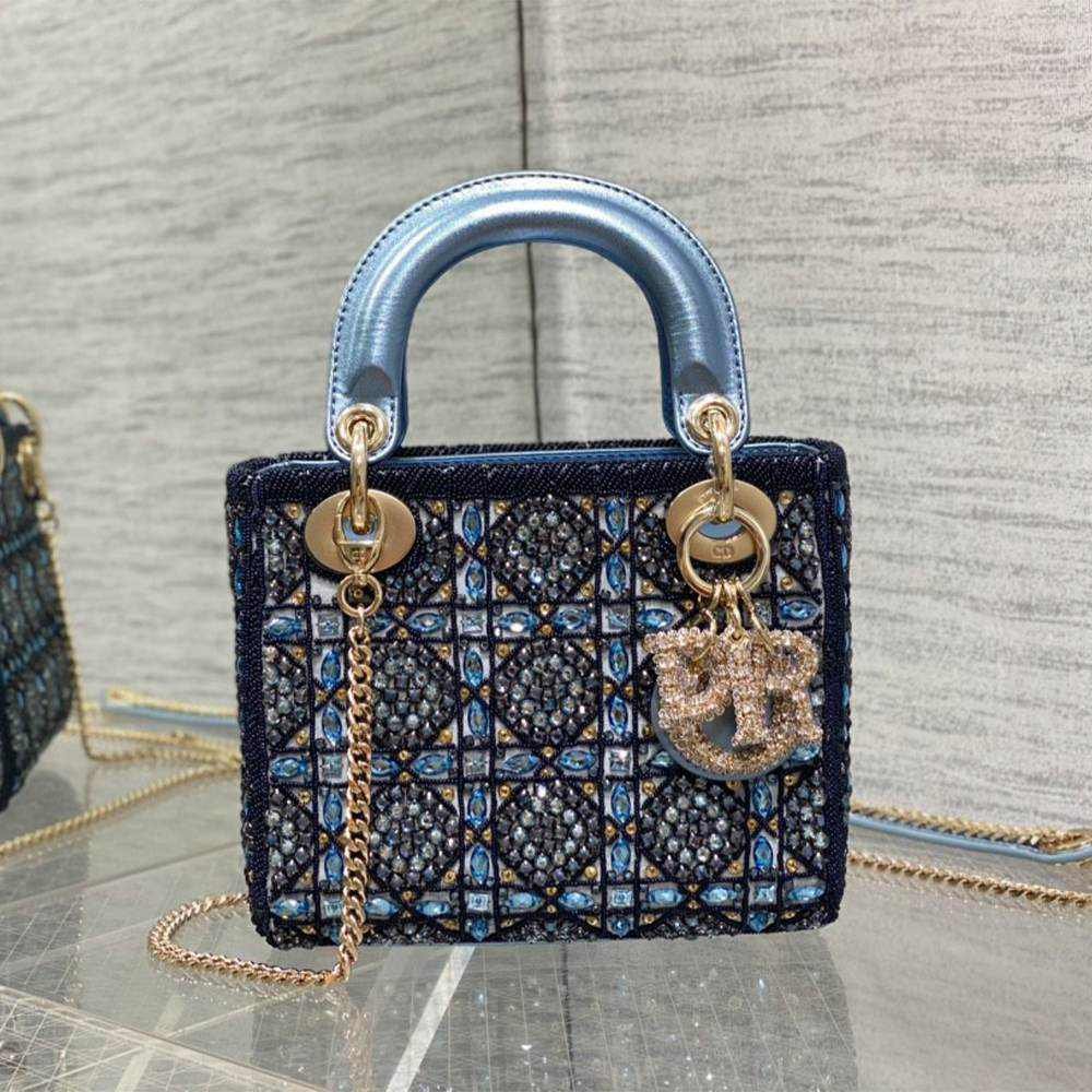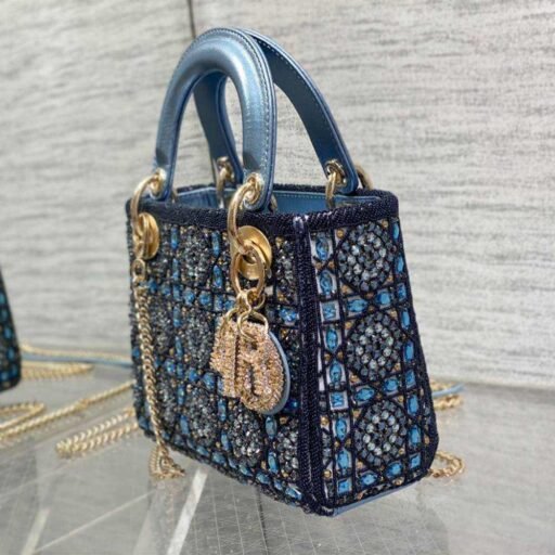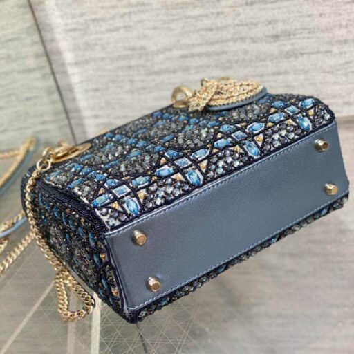 Metallic Lambskin and Celestial Blue Satin Embroidered with Beads