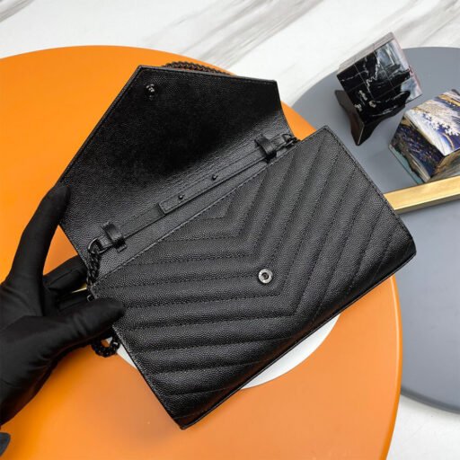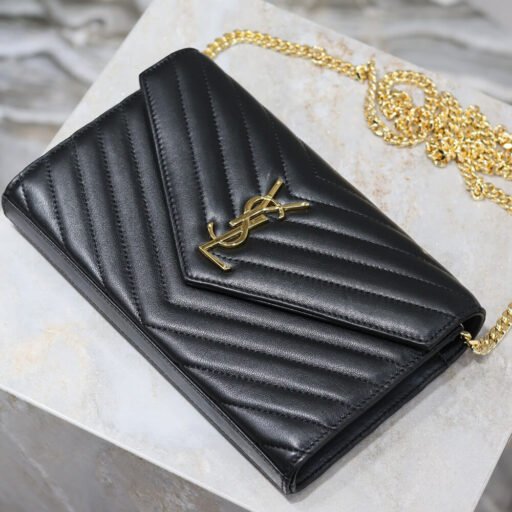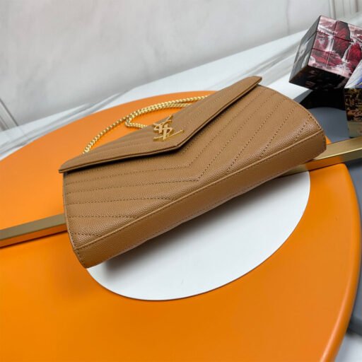YSL cassandre envelope chain wallet in grain de poudre leather(High-end Grade)